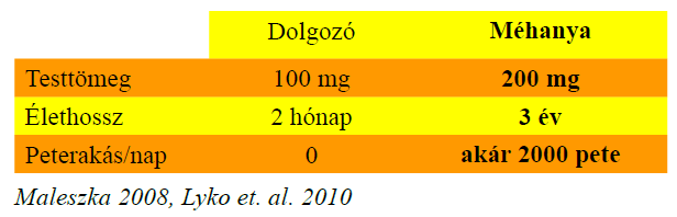 Lárva állapotban az anyának nevelt egyedet a többiek méhpempővel táplálják és tízszer annyi tápláló anyaghoz jut, mint a dolgozónak szánt egyedek. Ennek eredményeként a méhanya különbözni fog a dolgozóktól méretben, viselkedésben, testfelépítésben és élettartamban is. A táplálkozásbeli különbség az élet kezdetének kritikus szakaszában előre programozza a méh fejlődését és anyagcseréjét.